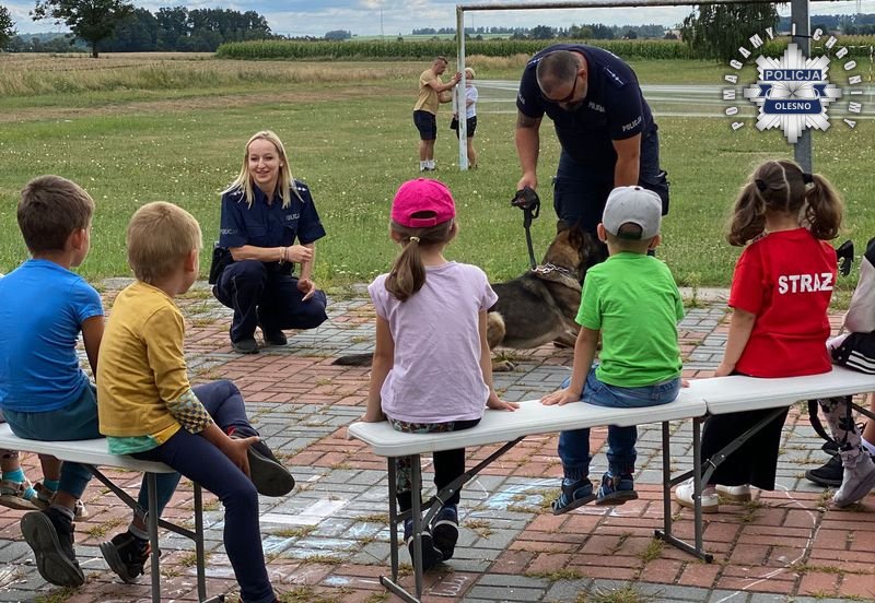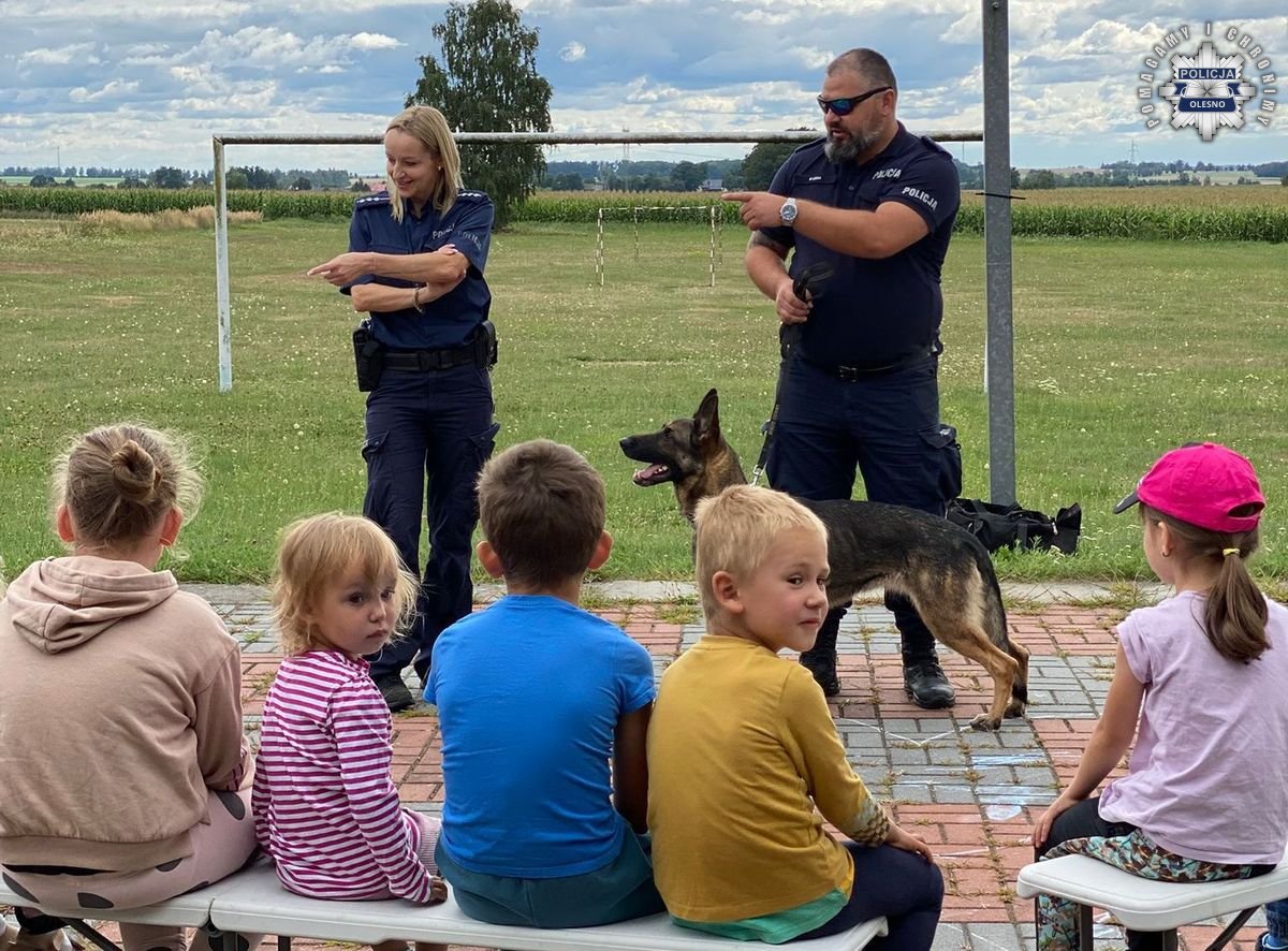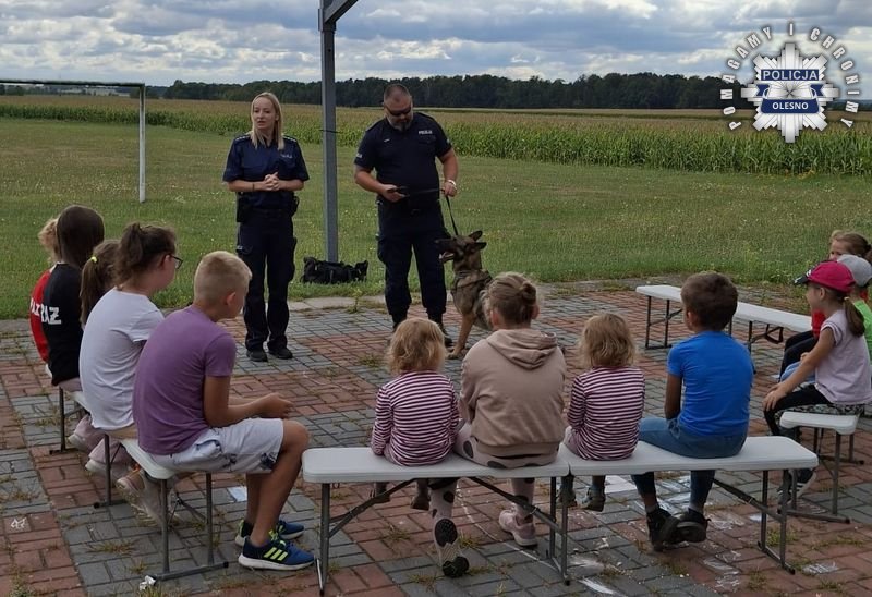 Policjanci z Olesna odwiedzili uczestników półkolonii zorganizowanych w Miejskim Domu Kultury w Oleśnie. Spotkali się również z uczestnikami warsztatów w Kobylej Górze. Podczas spotkań rozmawiali z dziećmi o tym, jak unikać zagrożeń podczas wakacji. Policjanci informowali również o przepisach dotyczących hulajnóg elektrycznych.