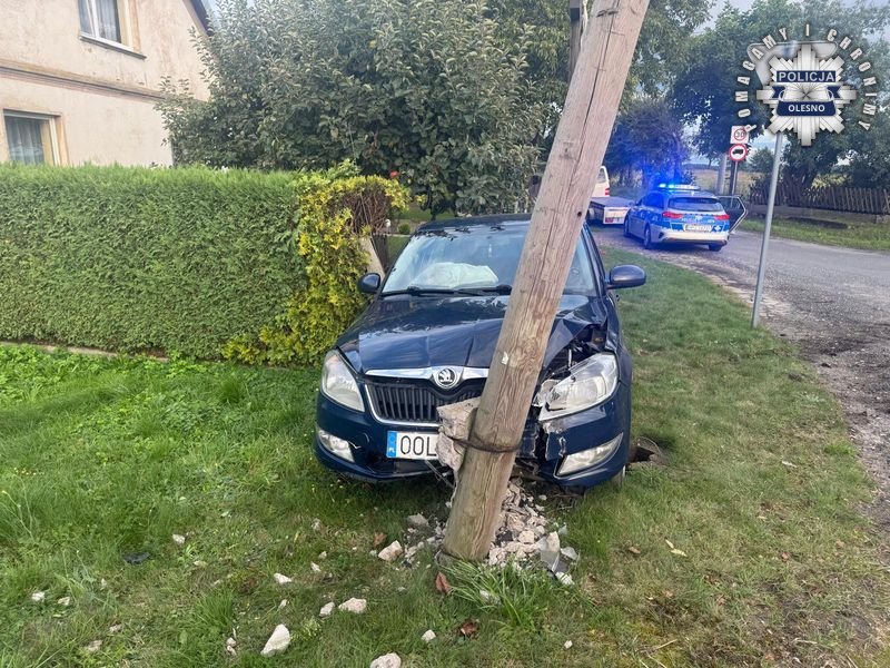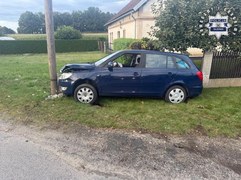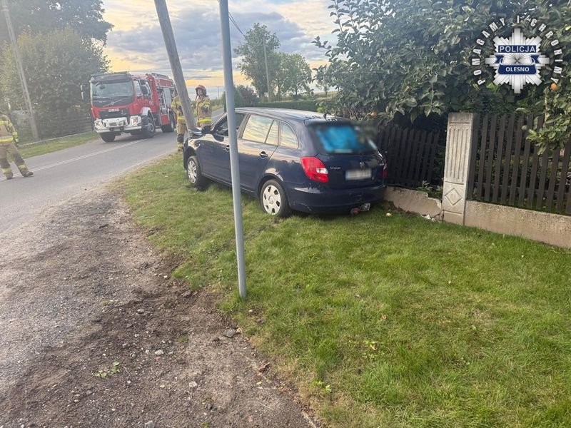 Policjanci z Olesna zostali wysłani do miejscowości Wysoka, gdzie miało dojść do kolizji. Według zgłaszającego kierujący samochodem osobowym uderzył w ogrodzenie posesji i słup telekomunikacyjny.