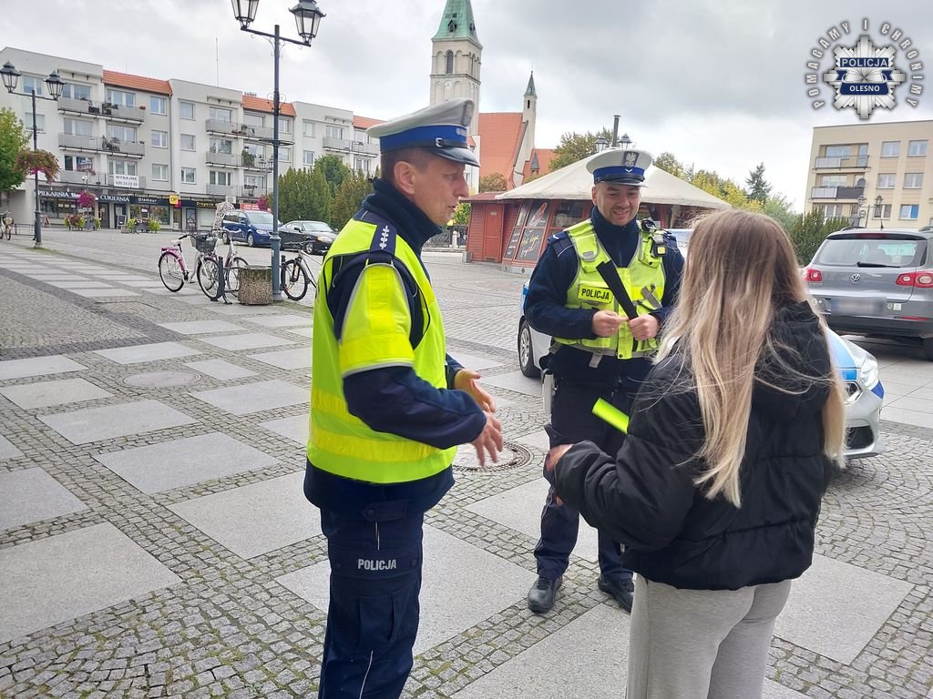 W październiku, w całym kraju, prowadzona jest przez policjantów akcja " Świeć przykładem". Jej zadaniem jest uświadomienie niechronionym uczestnikom ruchu drogowego, że stosowanie odblasków znacząco zwiększa bezpieczeństwo pieszych, zwłaszcza poza obszarami zabudowanymi. Jesień jest ku temu doskonałym momentem. Dlatego też funkcjonariusze oleskiej drogówki przekazują użytkownikom dróg elementy odblaskowe, zwracając jednocześnie uwagę na to jak ważne jest, by być dobrze widocznym na drodze.
