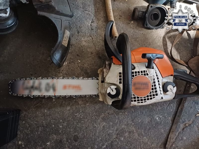 Pod koniec listopada br. olescy kryminalni otrzymali zgłoszenie dotyczące kradzieży piły spalinowej z posesji w jednej z miejscowości pod Olesnem. Funkcjonariusze od razu przystąpili do czynności, mających na celu ustalenie osoby, odpowiedzialnej za przestępstwo. Kryminalni zabezpieczyli ślady oraz dostępny monitoring. Jak ustalili śledczy, mężczyzna odpowiedzialny za kradzież przyjechał na posesję samochodem i po chwili zapakował do niego piłę spalinową. Po pewnym czasie wrócił na miejsce przestępstwa, ponieważ skradziona piła była pozbawiona łańcucha i żeby skompletować sprzęt, jeszcze tego samego dnia dokonał kolejnej kradzieży.