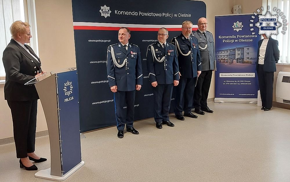 Wczoraj w Komendzie Powiatowej Policji w Oleśnie odbyła się uroczysta zbiórka związana ze zmianą na stanowisku komendanta powiatowego. Komendant Wojewódzki Policji w Opolu nadinsp. Magdalena Nguyen-Fudala rozkazem personalnym obowiązki Komendanta Powiatowego Policji w Oleśnie powierzyła mł. insp. Waldemarowi Popczykowi, a obowiązki I Zastępcy Komendanta Powiatowego Policji w Oleśnie podinsp. Jerzemu Kieratowi, który wcześniej kierował Komisariatem Policji w Praszce.