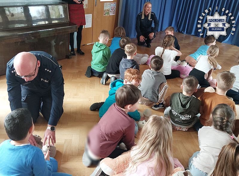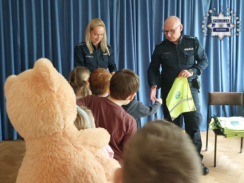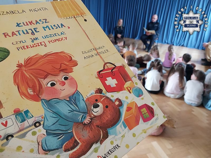 W warsztatach uczestniczył Naczelnik Wydziału Prewencji Komendy Powiatowej Policji w Oleśnie kom. Damian Troczka, który przypomniał, w jaki sposób należy korzystać z numeru alarmowego 112 i przeczytał przedszkolakom bajkę pt. „Łukasz Ratuje Misia”, książeczka w swojej treści w przystępny sposób podsumowuje informacje przekazane podczas warsztatów. Po słuchowisku przedszkolaki otrzymały pamiątkowe medale i odblaskowe torby, które zostały wręczone przez policjantów.