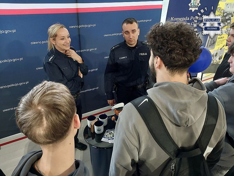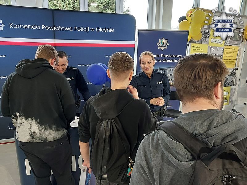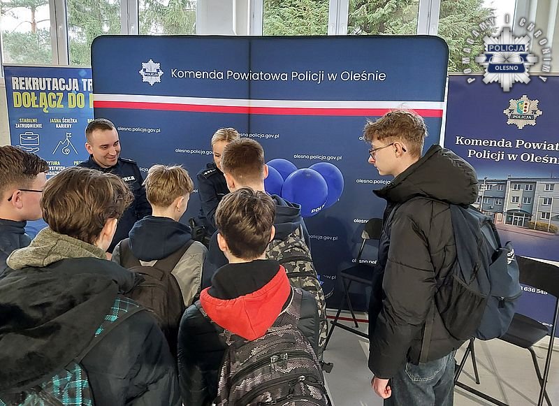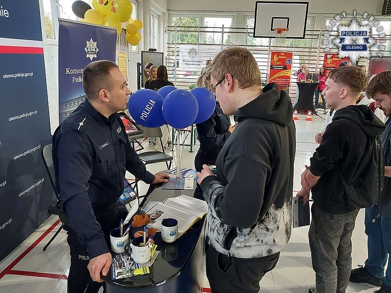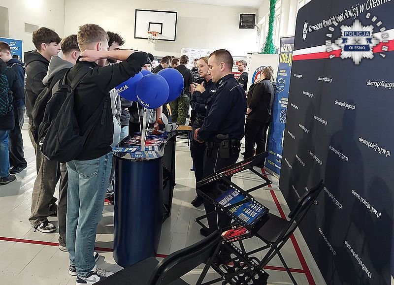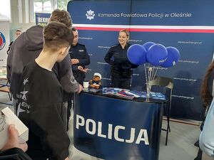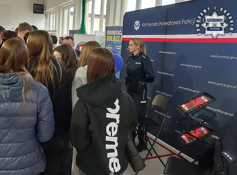 Swoje stanowisko zaprezentowali również policjanci z Komendy Powiatowej Policji w Oleśnie, którzy przybliżyli uczestnikom specyfikę służby w Policji. Funkcjonariusze skupili się przede wszystkim na procesie rekrutacji oraz warunkach przyjęcia do służby.