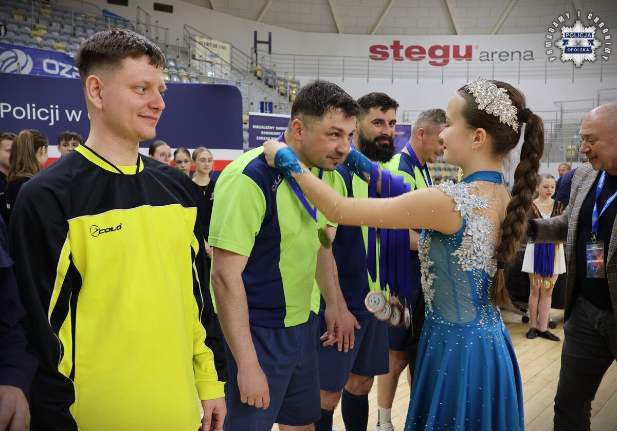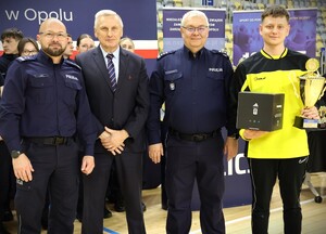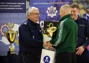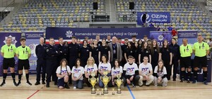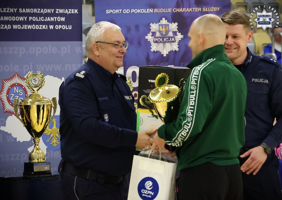Puchary, medale, pamiątkowe zdjęcia, gratulacje i nagrody zwycięzcom wręczył Zastępca Komendanta Wojewódzkiego Policji w Opolu insp. Zbigniew Stanowski, Przewodniczący Zarządu Wojewódzkiego NSZZP w Opolu asp. szt. Artur Kuś oraz zaproszeni goście. O oprawę artystyczną wydarzenia zadbały mażoretki z klubu Cobra Turawa oraz Pan Dawid Krzyżowski - światowy finalista football freestyle.
